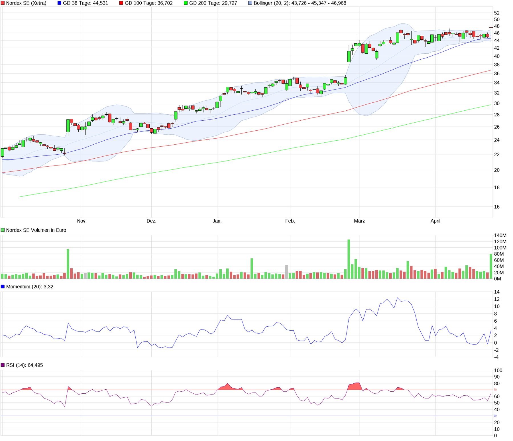 Seit Beginn der Datenerfassung haben wir für Nordex achtundzwanzig Einstiegskurse genannt. Die Trefferquote liegt bei 78,57 Prozent.
